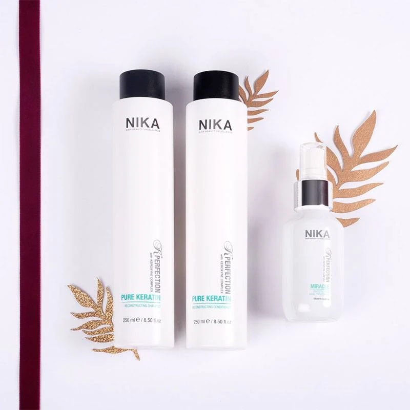 Pour obtenir des résultats encore plus flagrants, vous pouvez réaliser un rituel complet restructurant avec le shampooing Pure Keratin pour nettoyer vos cheveux, le masque Pure Keratin pour soigner la chevelure ainsi que le spray sans rinçage Miracle pour la protéger.