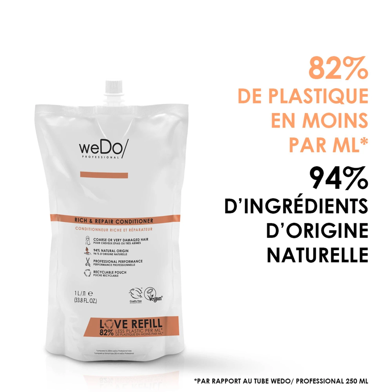 L’après-shampoing réparateur respecte également les animaux et l’environnement, car il est certifié Cruelty Free, Vegan et la fabrication de son packaging est écologique. En effet, son tube est composé à 50% de plastique recyclé et est recyclable.