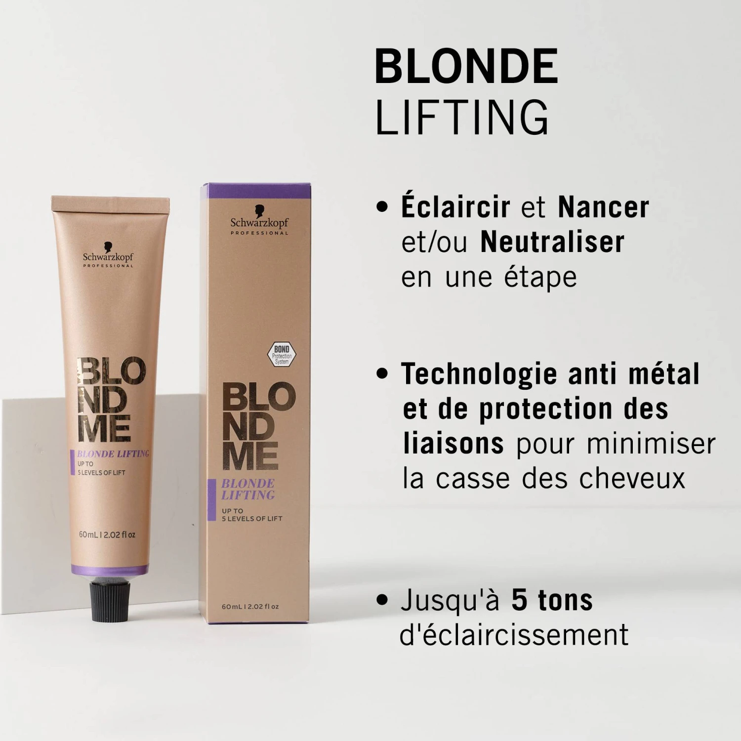 Elle est dotée de la technologie Dual Bond* qui a pour action de réduire les dommages. Les liaisons sont ainsi protégées durant tout le processus de coloration et la casse est réduite. Les Techologies Anti-Métal et Protection des Liaisons protègent la fibre des cheveux et minimisent la casse durant toute la technique.