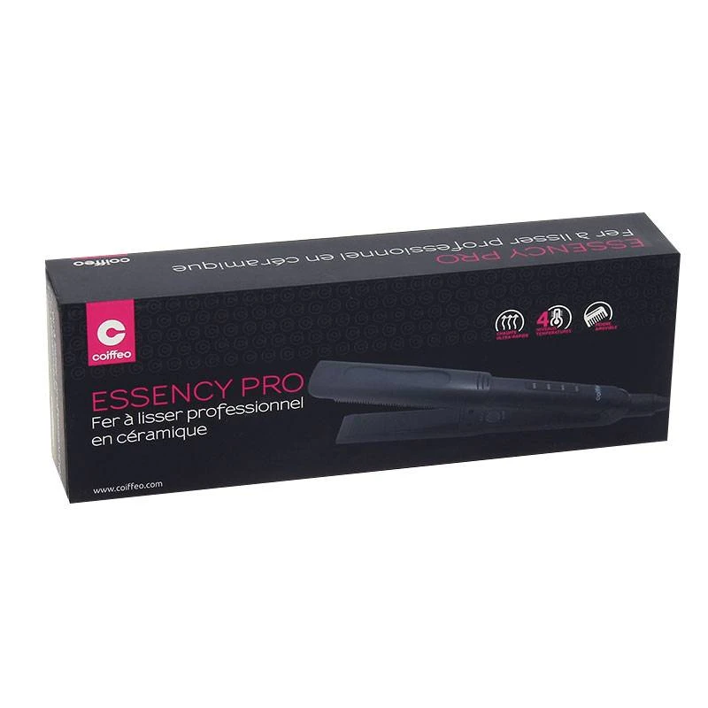 Le lisseur Essency Pro est doté 2 plaques flottantes en céramique pour un lissage facile et un résultat professionnel. Son peigne intégré permet de démêler et coiffer les cheveux tout en lissant. Grâce à son affichage LED, on peut facilement contrôler la température des plaques. Celles-ci chauffent instantanément, et atteignent 230°C en 30 secondes.