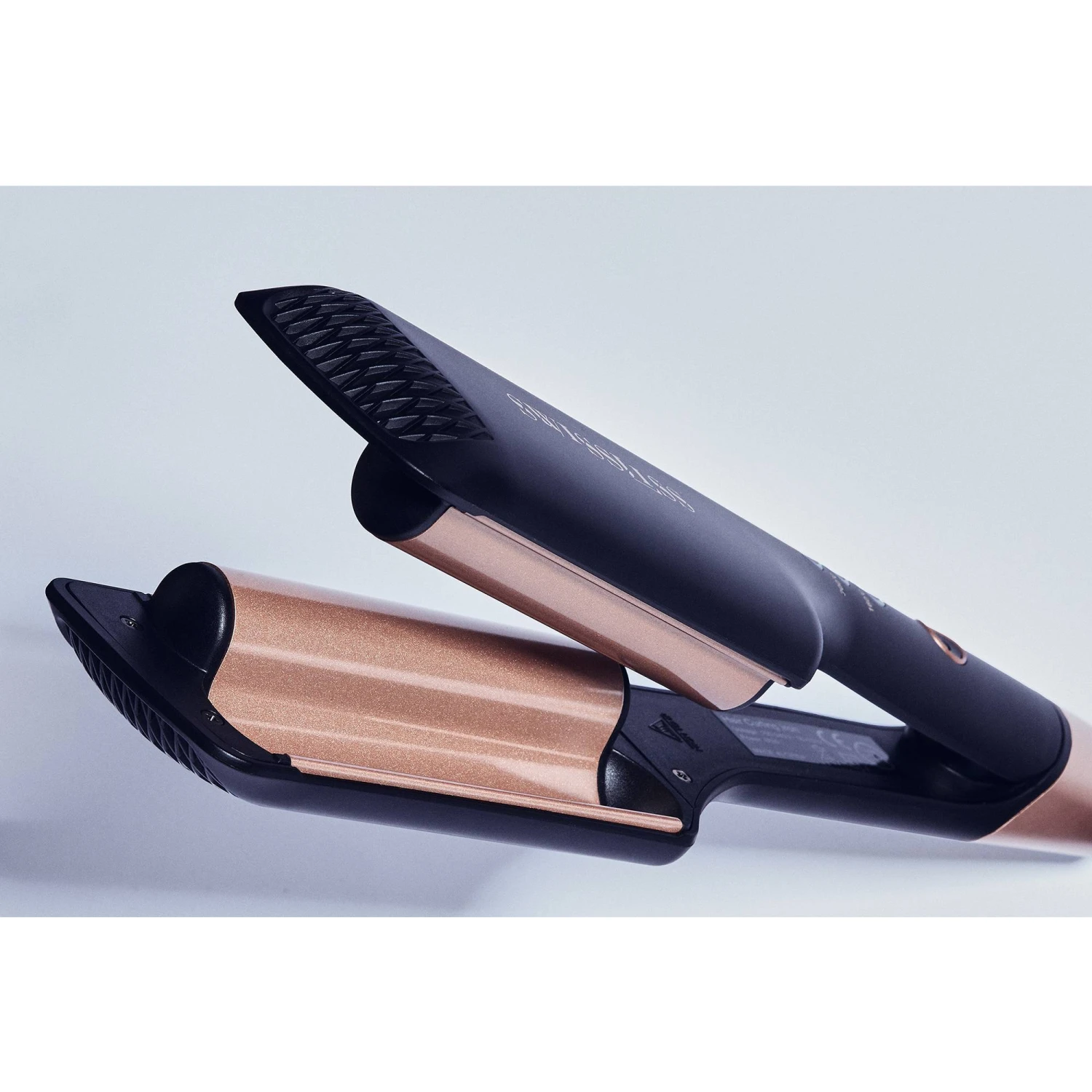 Séparez vos cheveux en différentes sections et laissez les plaques du Wavy Edition quelques secondes.