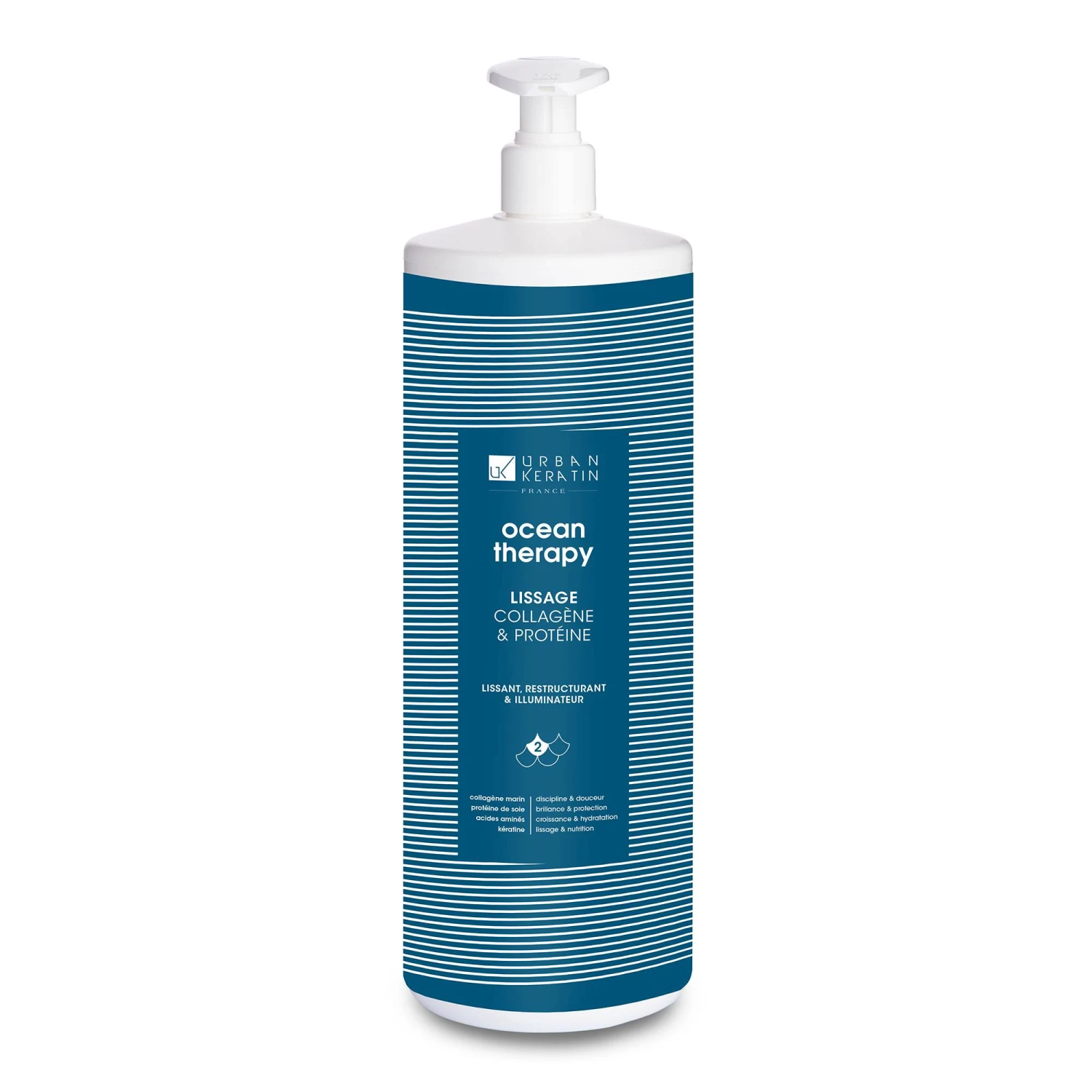Le Traitement Collagène Ocean Therapy utilise une technologie avancée enrichie en collagène marin végétal et protéine de soie, combinée à un complexe de neuf super-ingrédients pour transformer les cheveux frisés et indisciplinés en une chevelure lisse, douce et lumineuse.