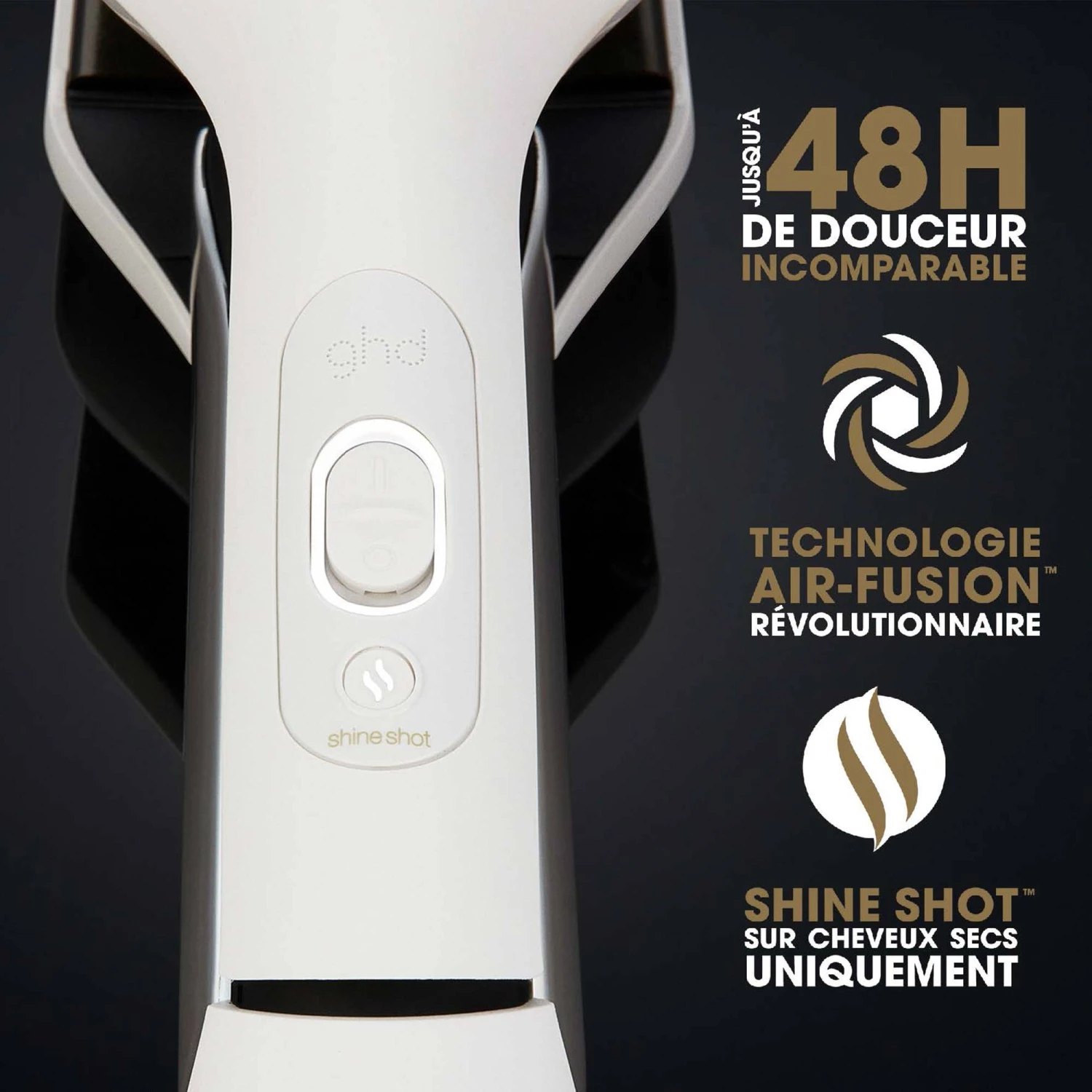 ^mesuré avec le mode Séchage VS des cheveux séchés avec un sèche-cheveux ghd et une brosse, en fonction de l’utilisation par le consommateur.