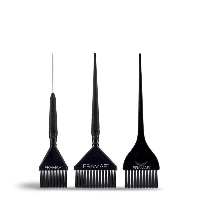– 1 pinceau extra large pour les retouches sur les racines – 1 pinceau classique utilisé pour toutes les techniques de coloration et de décoloration.