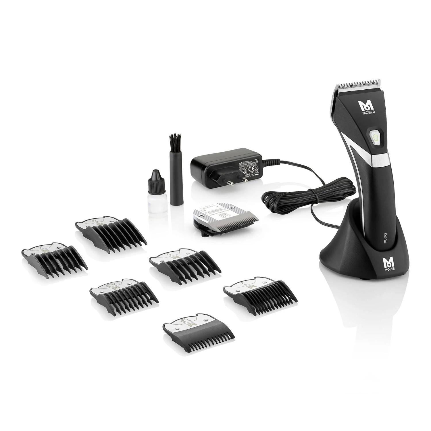 La tondeuse de coupe KUNO de Moser permet de réaliser des coupes de manière très précise avec des transitions naturelles. Elle permet également de couper au plus près de la peau.
