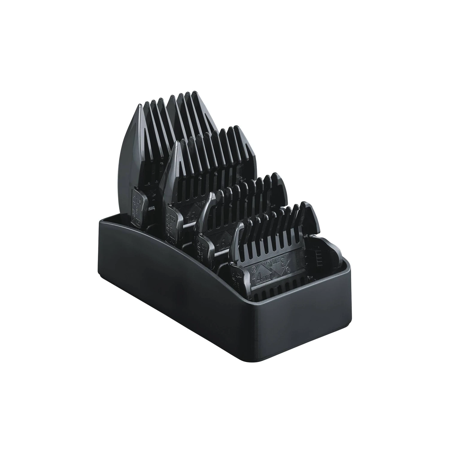 Enfin, elle est livrĂ©e avec 4 contre-peignes permettant de rĂ©aliser jusqu’Ă 8 longueurs de coupe diffĂ©rentes et 1 socle de charge.