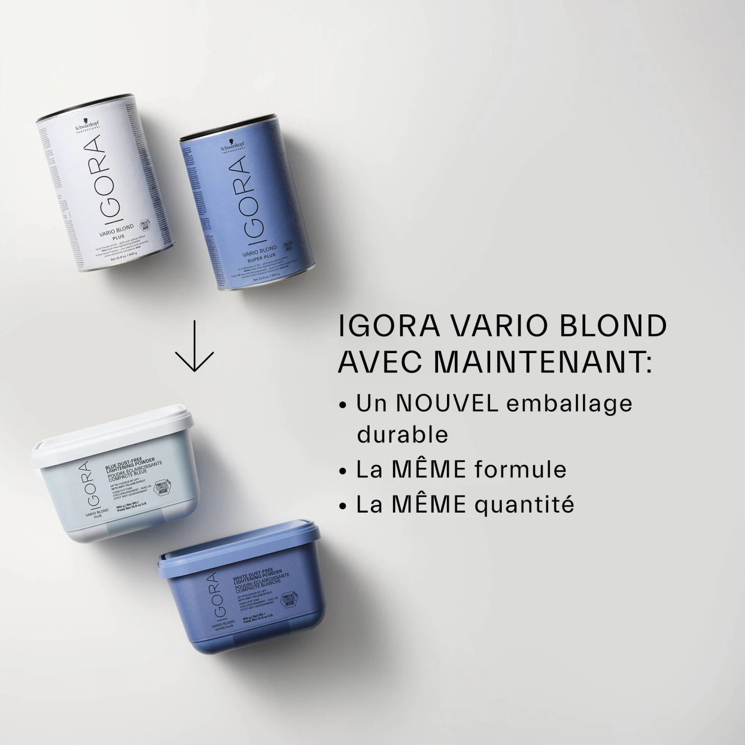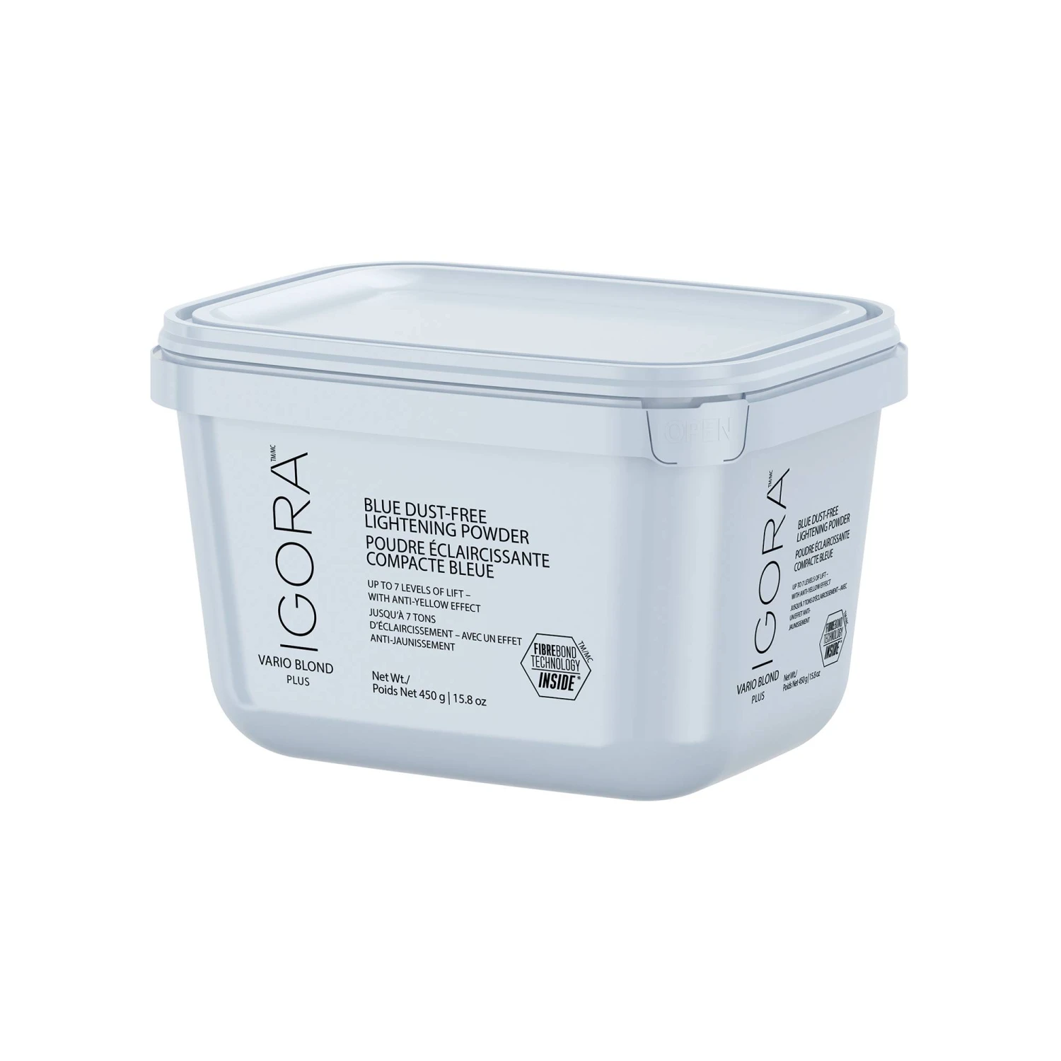 La poudre éclaircissante compacte bleue Igora Vario Blond Plus de Schwarzkopf Professional permet d’éclaircir jusqu’à 7 tons les cheveux.