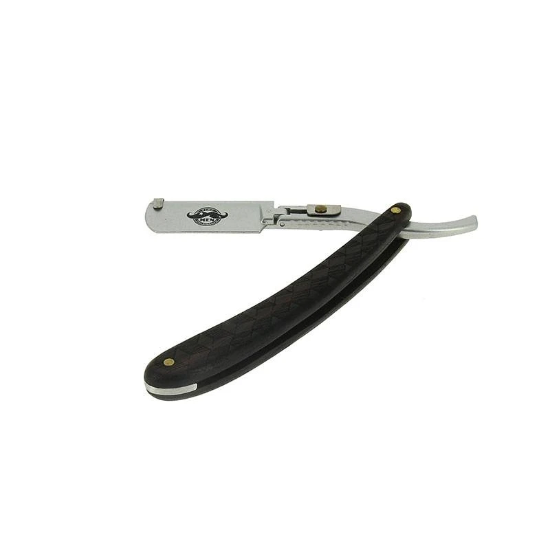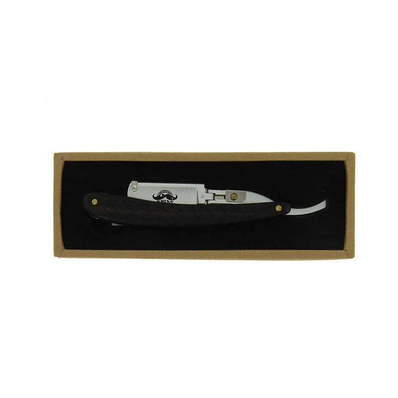 Son manche en bois noir travaillé fait de ce rasoir un véritable objet de décoration. Il trouvera parfaitement sa place que ce soit dans un salon de barbier ou dans une salle de bain.