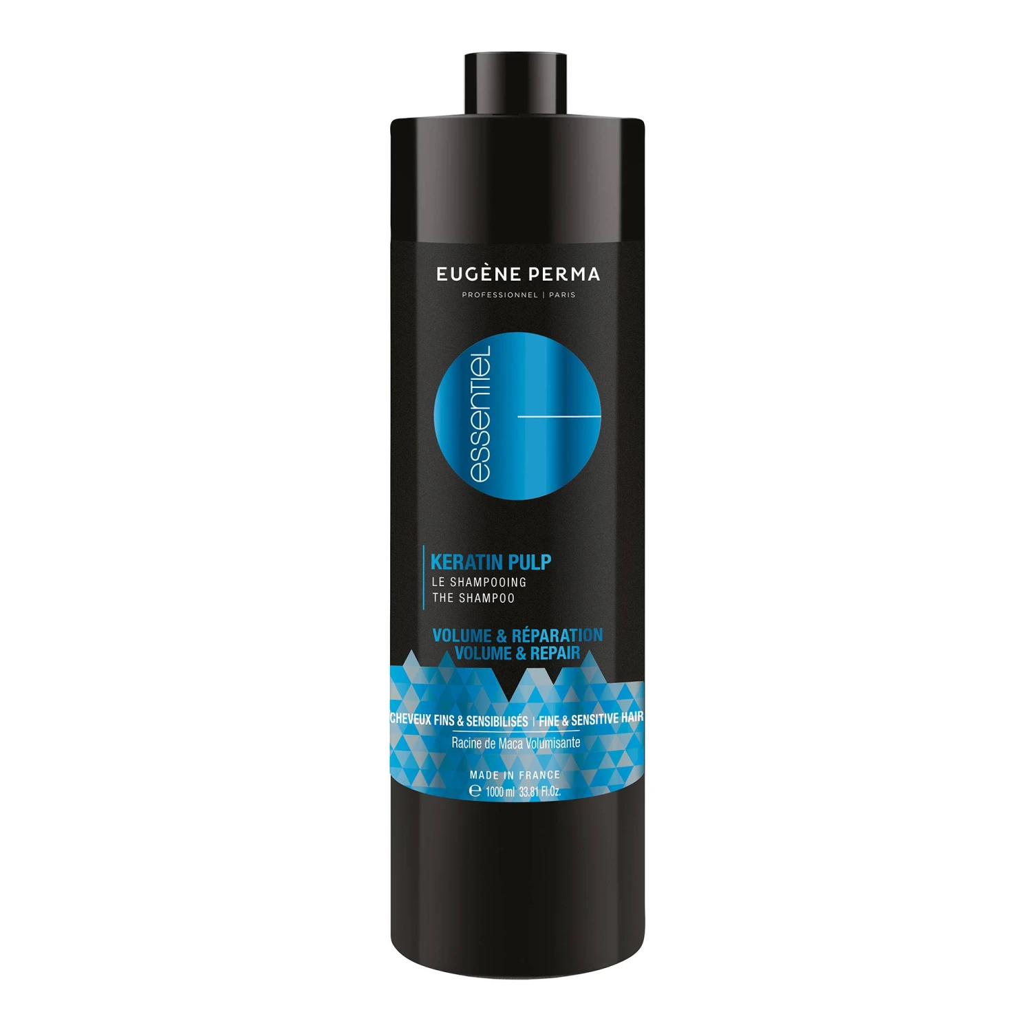 *Test d’usage sous contrôle dermatologique effectué sur 30 femmes ayant les cheveux fins, fragilisés, en manque de volume, après utilisation pendant 4 semaines du shampooing et du soin avant lavage Keratin Pulp.