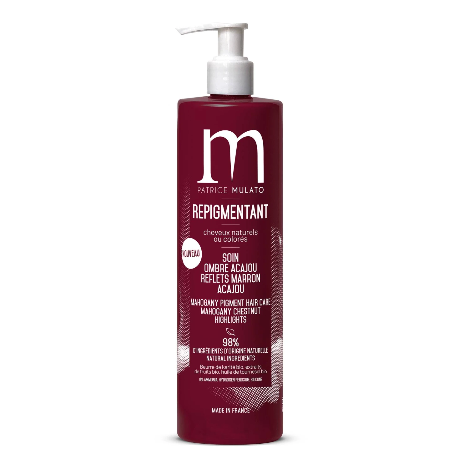 Le soin repigmentant Ombre Acajou de Mulato apporte des reflets marron acajou sur cheveux naturels et ravive l’intensité d’une couleur sur cheveux colorés ou méchés. Sans effet racine !