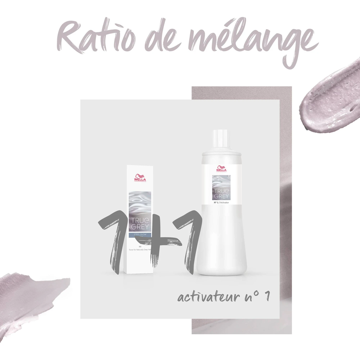 L’activateur n°1 True Grey faible volume respecte la structure de la cuticule des cheveux naturellement blancs ou poivre et sel. Il est conçu pour être mélangé aux différentes nuances True Grey.